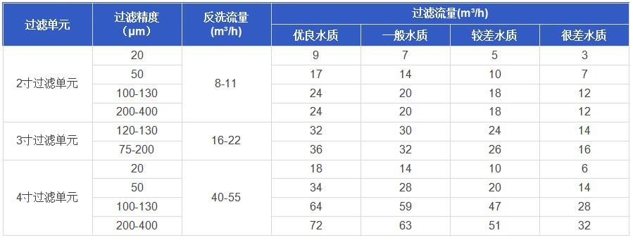 選擇過(guò)濾器過(guò)濾精度即盤片,對(duì)保證疊片式過(guò)濾系統(tǒng)在整個(gè)水系統(tǒng)發(fā)揮應(yīng)用的作用有著重要意義,只有選擇合理正確才能滿足后續(xù)的水質(zhì)要求。下表為在常見(jiàn)的集中過(guò)濾用途時(shí),推薦選擇的過(guò)濾精度。